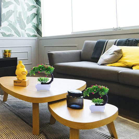 Kunstig Rosa Buet Sweet Plum Bonsai i Hvit Plastpotte 19cm