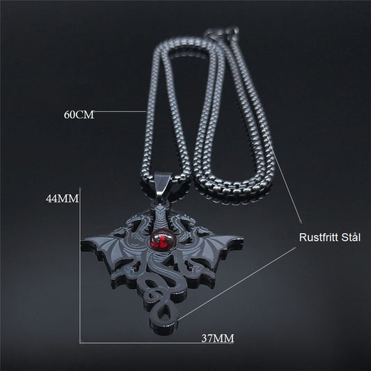 Svart Gotisk Tohodet Drage Kjede med Rubin Edelstein
