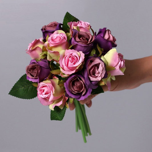 Kunstig Rosebukkett med 12 rosestilker 25cm