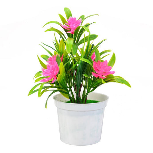Kunstig Rosa Hellig Bonsai Lotus Plante i Hvit Plastpotte 18cm